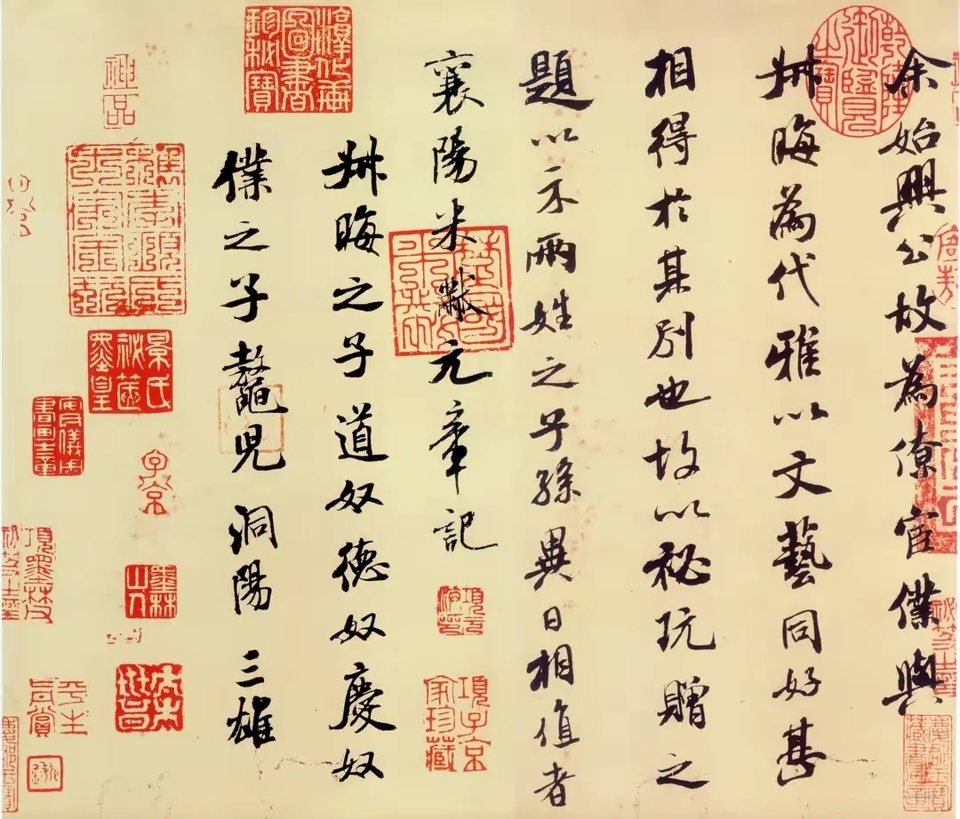 《叔晦帖》,北宋米芾作品,纸本,行书,纵24.5厘米,横29.6厘米 日本东京国立博物馆藏。上钤有“项元汴鉴藏印”、“安仪周家珍藏”、“ 乾隆鉴赏玺”、“太上皇帝之宝”、“乾隆宸翰”、“信天主人”、“淳化轩”、“梁清标印”、“黔南景氏珍藏”、“庆郡王宝藏书画章”等鉴藏印。