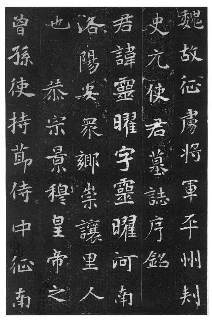 《元灵曜墓志》志石呈方形,边长77厘米,楷书27行,满行27字。1927年在河南洛阳后海资村西北出土,1938年由于右任捐赠并藏于西安碑林。